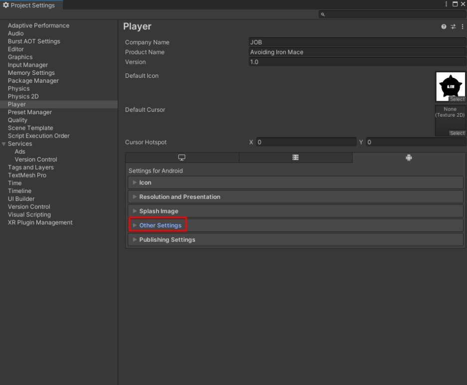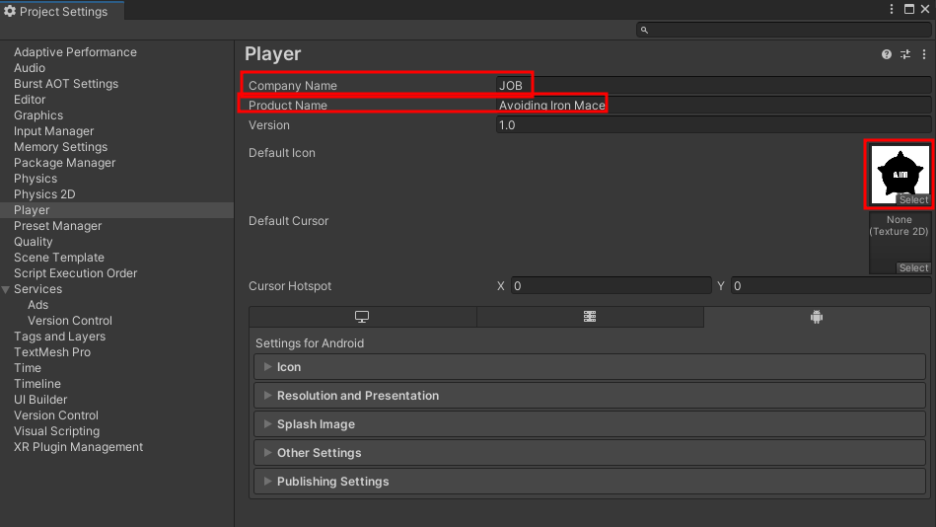 Company Name과 Product Name을 설정해주고 icon을 설정해준다