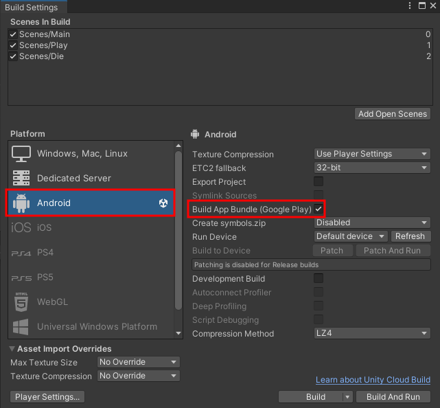 구글플레이에 올리려면 aab파일이 필요하니 Build App Bundle을 체크해준다