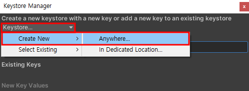 만약 keystore가 없다면 keystor manager에 가서 만들어준다