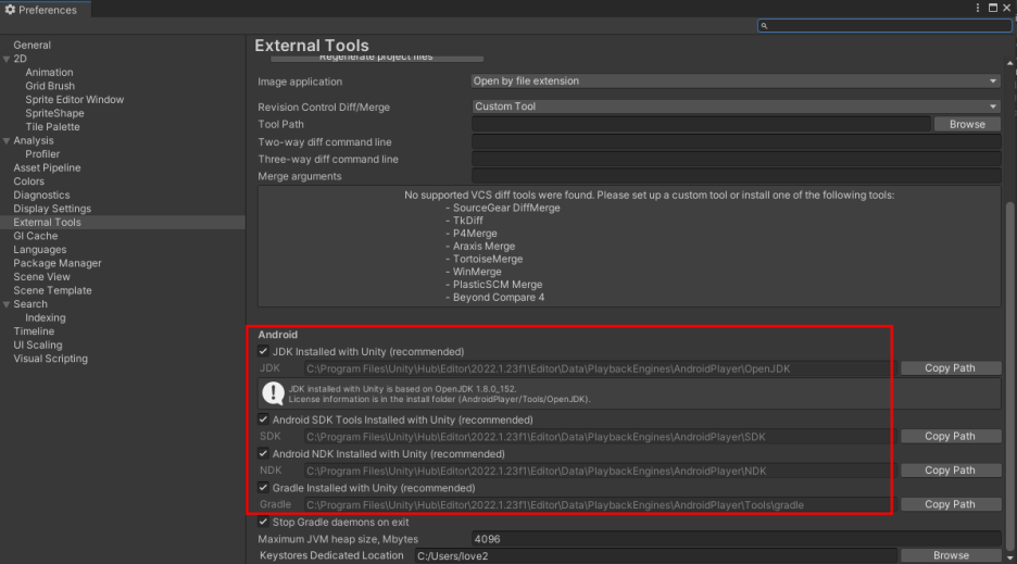 먼저 Edit에 Preferences에 들어가서 JDK,SDK,NDK,Gradle이 잘 적용되어있는지 확인한다