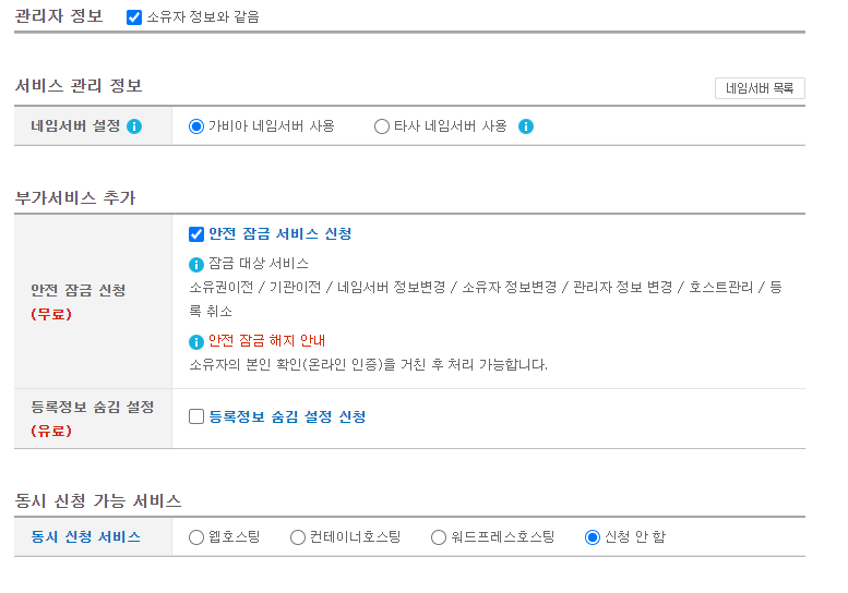 호스팅서비스도 가비아에서 이용할거라 같은곳에서 하는게