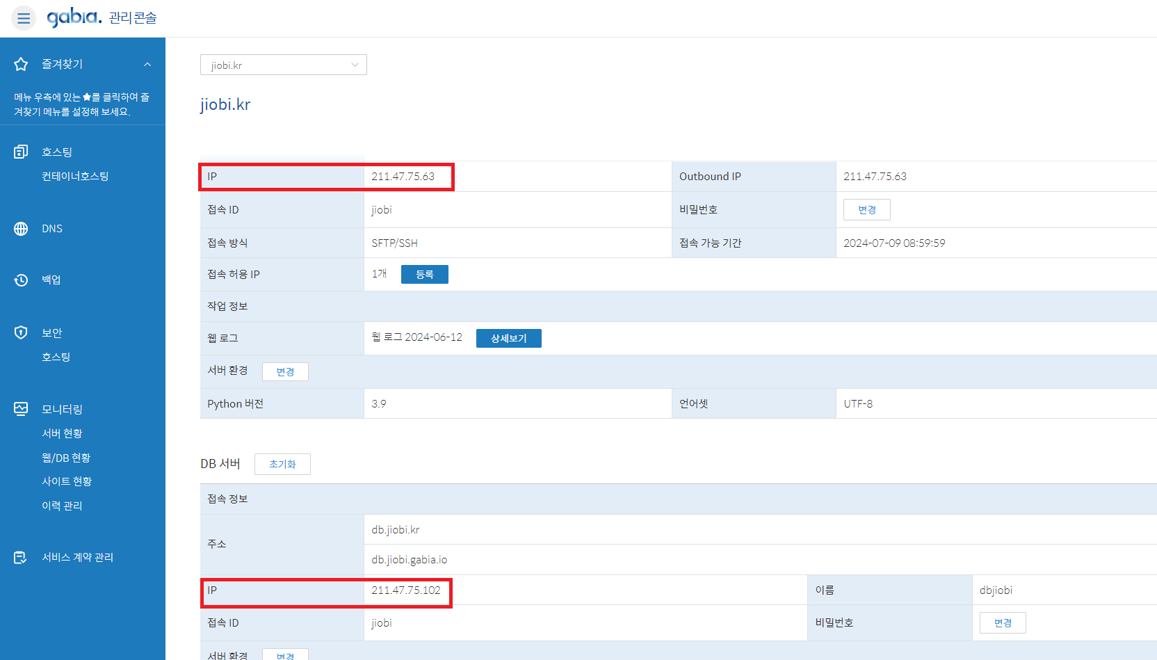 5. 밑으로 내려서 웹서버 IP와 DB서버 IP를 확인해줍니다
