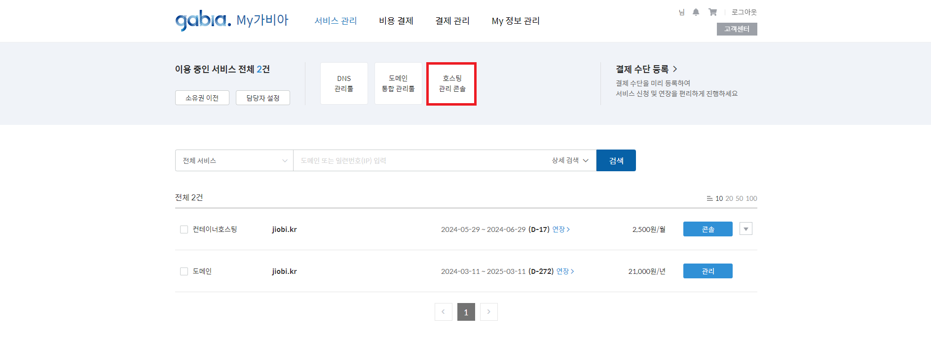 2. My가비아 → 서비스 관리