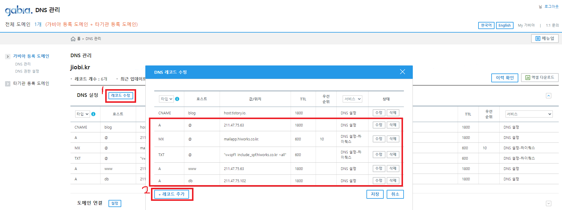 3. 가비아에서 DNS 설정하기
