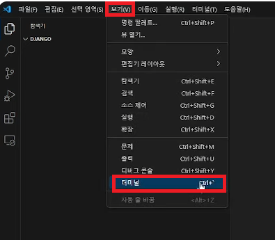 3. Ctrl + ` 키를 눌러 터미널을 엽니다