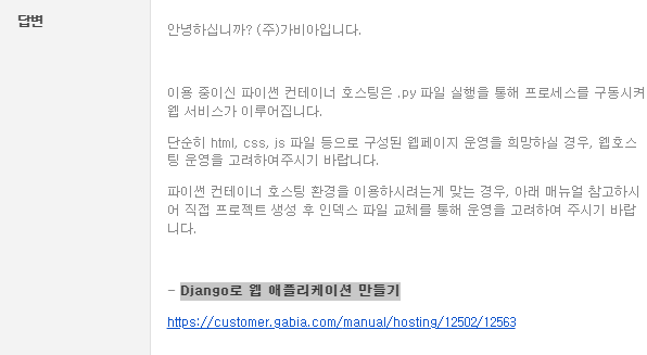 제가 구매한 호스팅은 파이썬 컨테이너 호스팅이기 때문에 .py로 구동을 시켜야 하는거였습니다