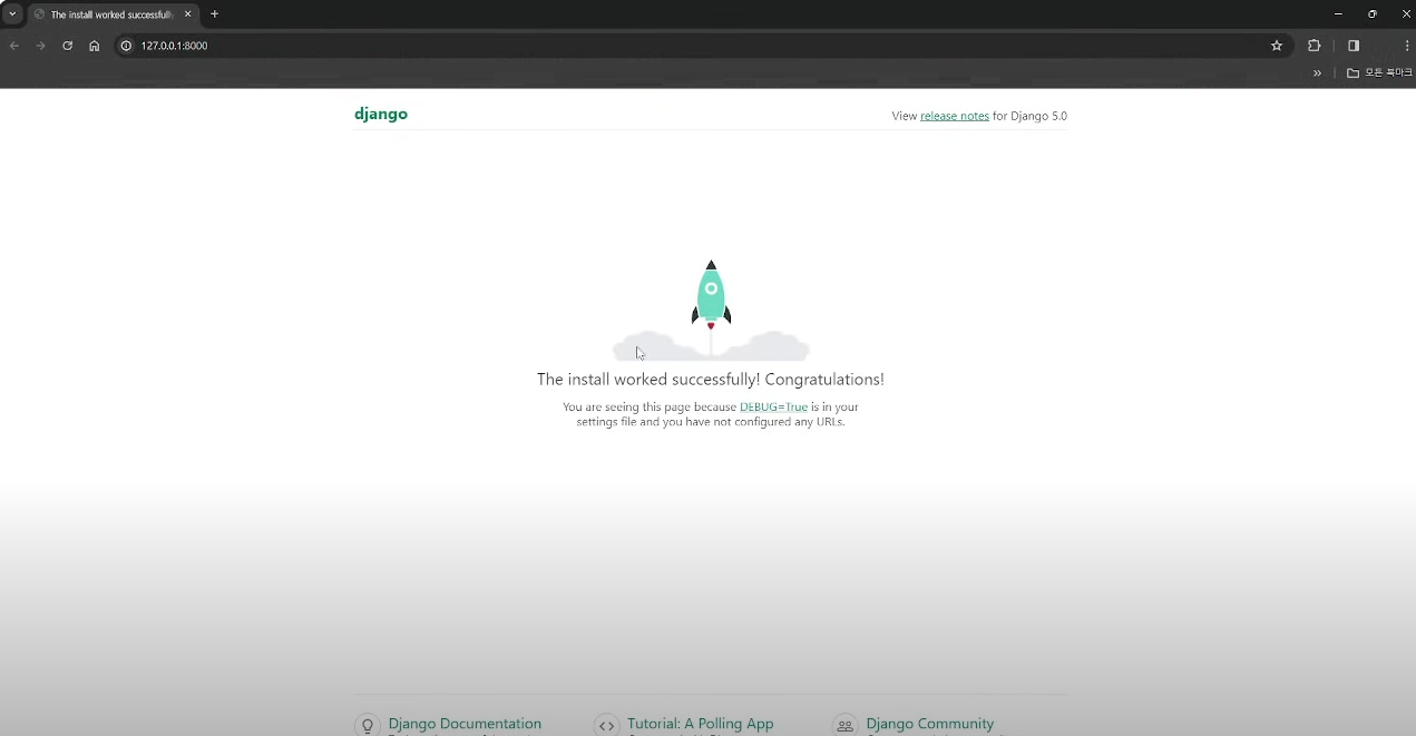 이제 [ py manage.py runserver ]을 입력해줍니다