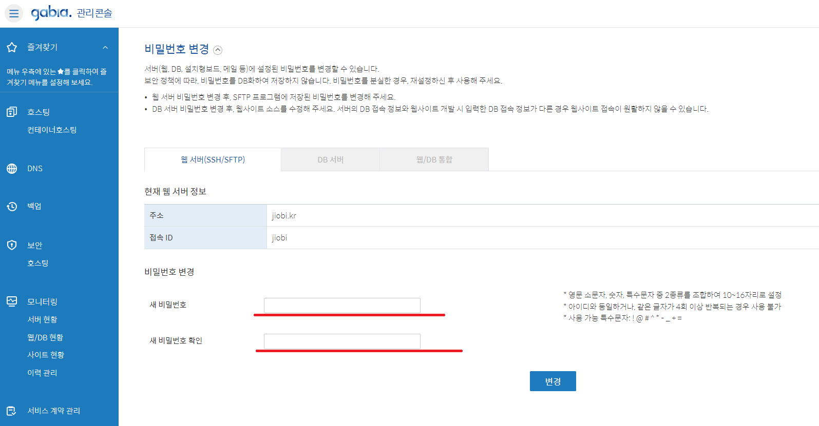 변경을 눌러 비밀번호를 재설정 해줍니다