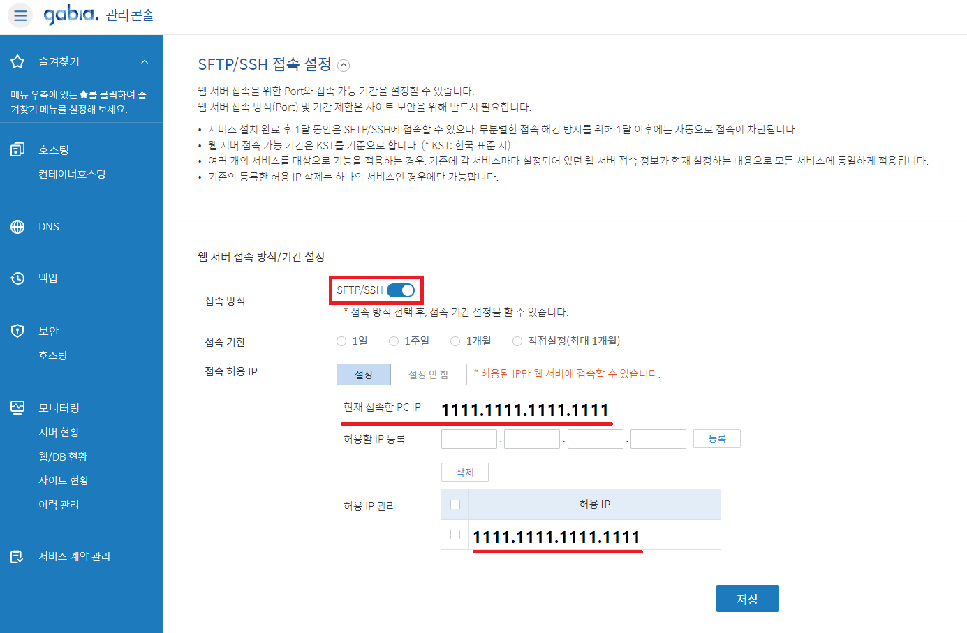 여기서 이건 내 사이트에 접속할 수 있는 IP가 아닌 내가 산 호스팅 서버에 접속할 수 있는 IP를 말하는겁니다