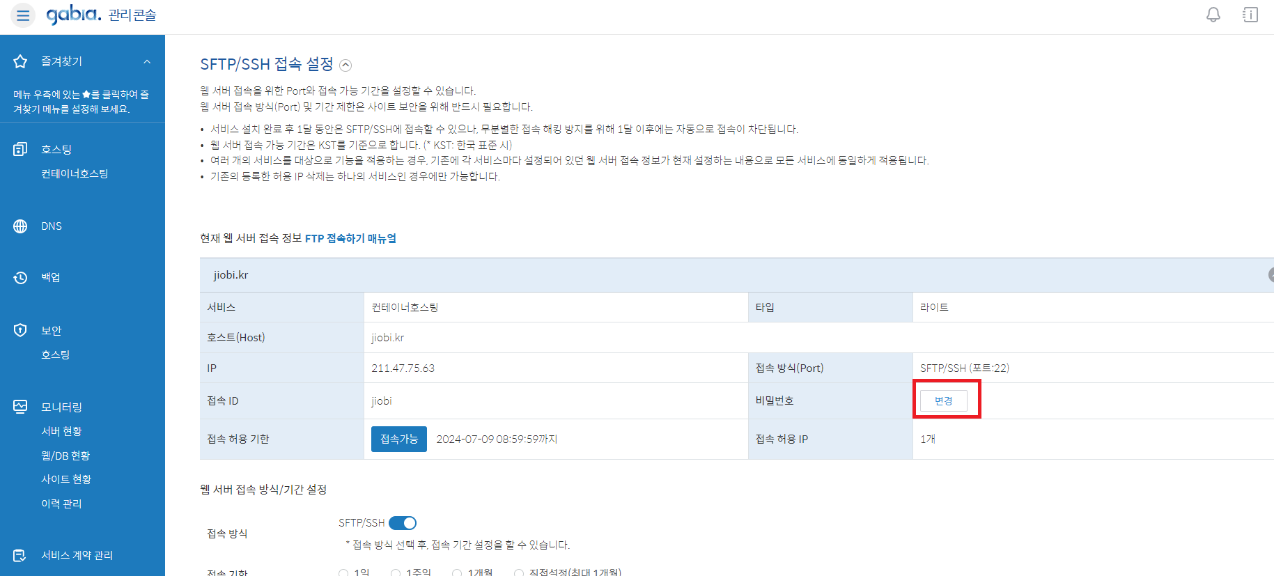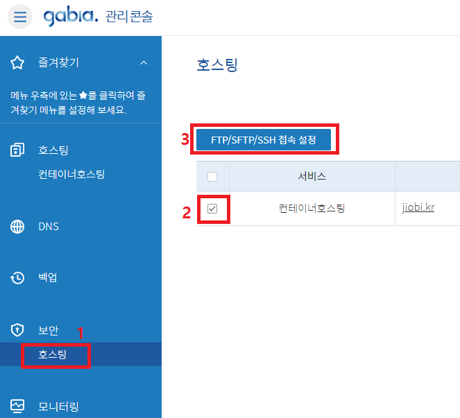 3. 호스팅 → 도메인 체크 → FTP/SFTP/SSH 접속 설정을 눌러줍니다