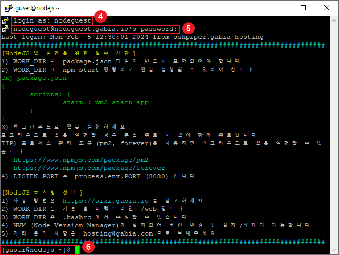 비밀번호는 입력 시 화면에 안보입니다 입력 후 enter를 누르면 아래 내용이 표기됩니다