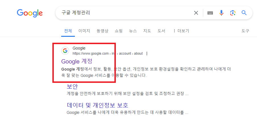 구글에 구글 계정관리라고 검색해 구글 계정에 들어가줍니다