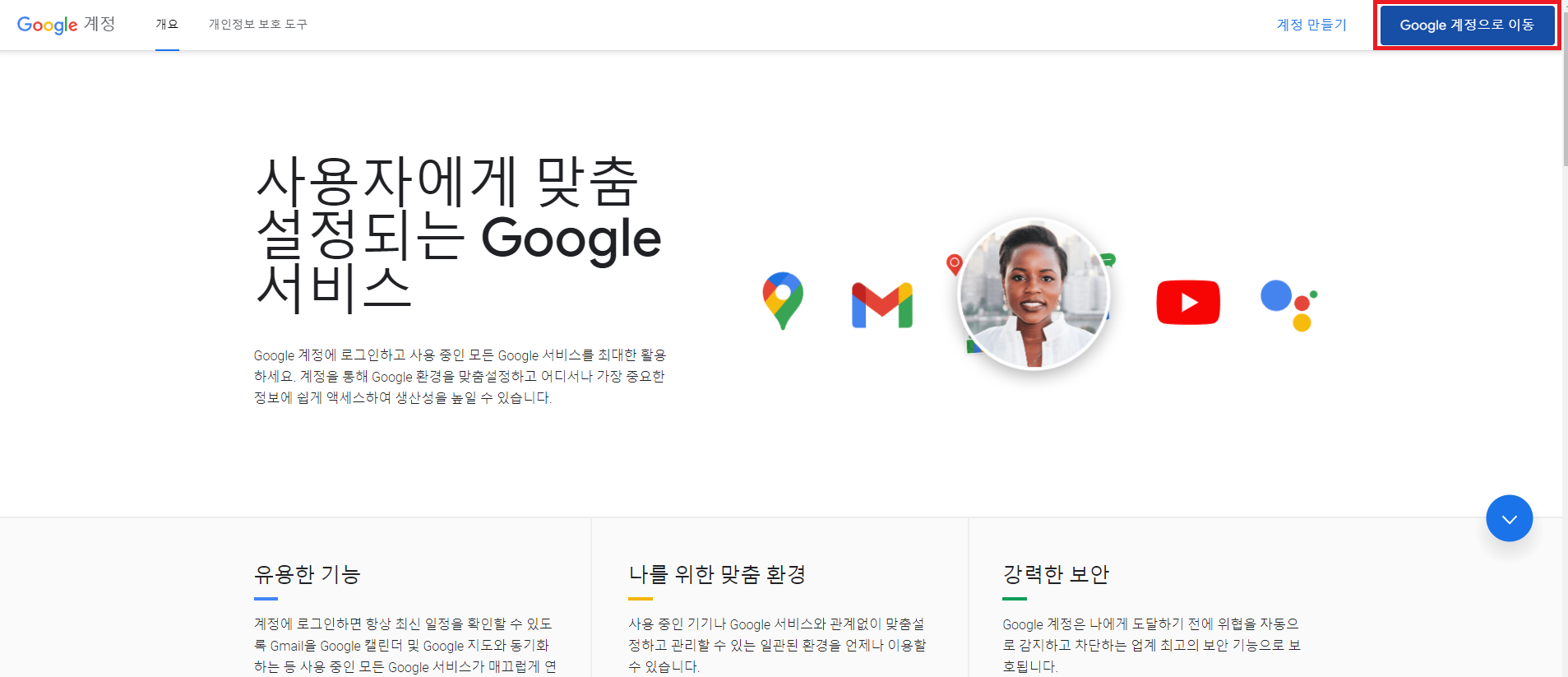 그 후 우측 상단의 구글 계정으로 이동을 눌러 로그인을 해줍니다