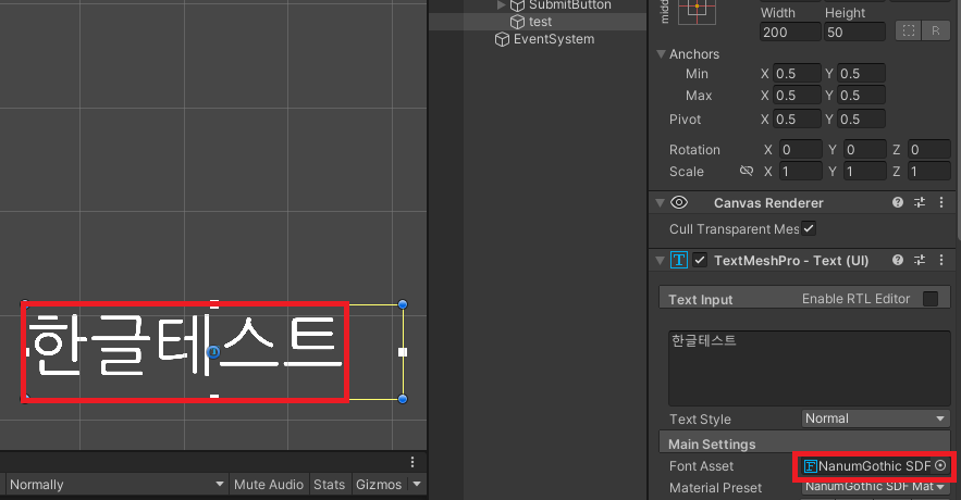 유니티 텍스트 메시 프로 한글 적용방법
