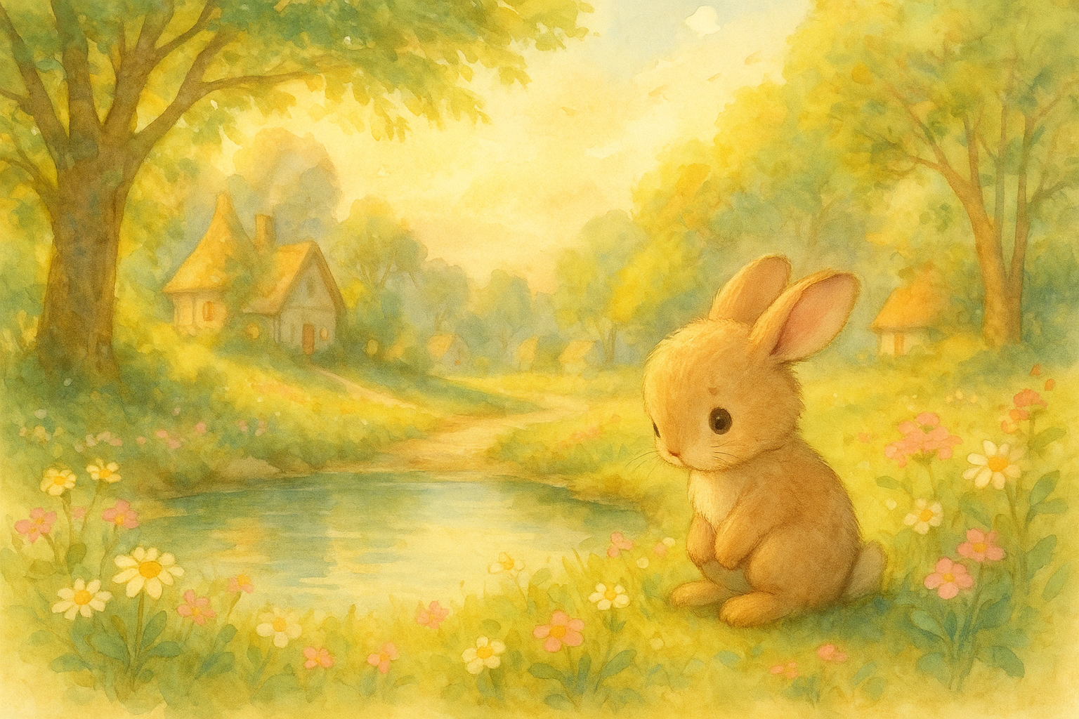 Toto was a quiet and kind little bunny, but he was very shy and had a hard time making friends. So he loved sitting alone by the pond, floating little leaf boats on the water.