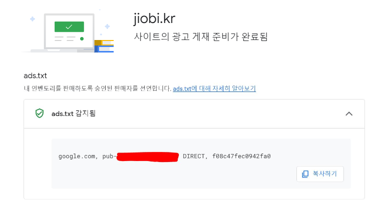 도메인뒤에 /ads.txt를 추가하면 됩니다