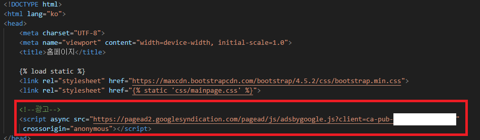 이제 HTML파일에 광고를 넣어주고 구글 애드센스에서 자동광고를 설정하면 광고는 끝입니다